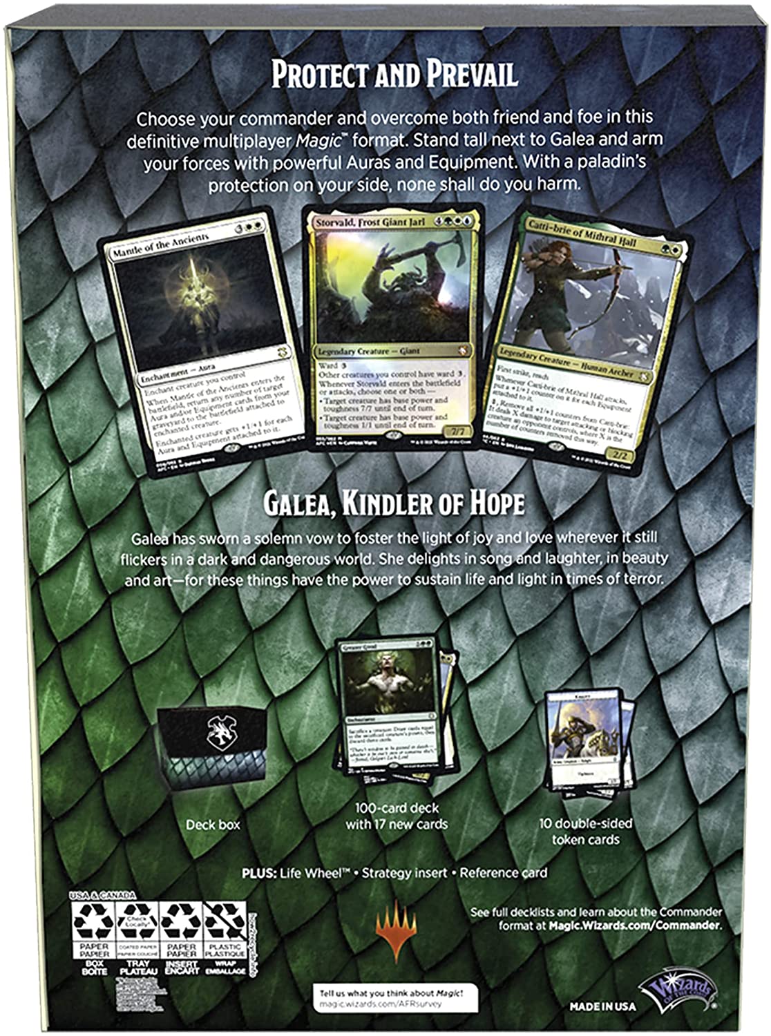 Choose your commander and overcome both friend and foe in this definitive multiplayer Magic format. Stand tall next to Galea and arm your forces with powerful Auras and Equipment. With a paladin's protection on your side, none shall do you harm.